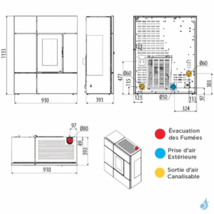 Pack poêle à granulés canalisable Nonza + Kit d’installation sortie arrière 10kW