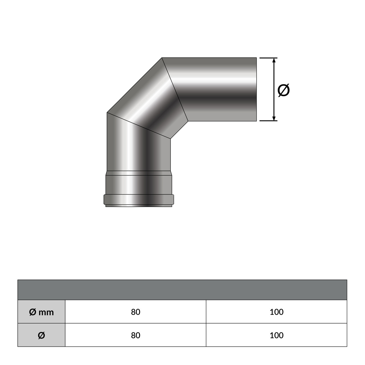 Coude fixe 90° pour poêles à granules de bois pellets Ø 100 mm – Spécifications