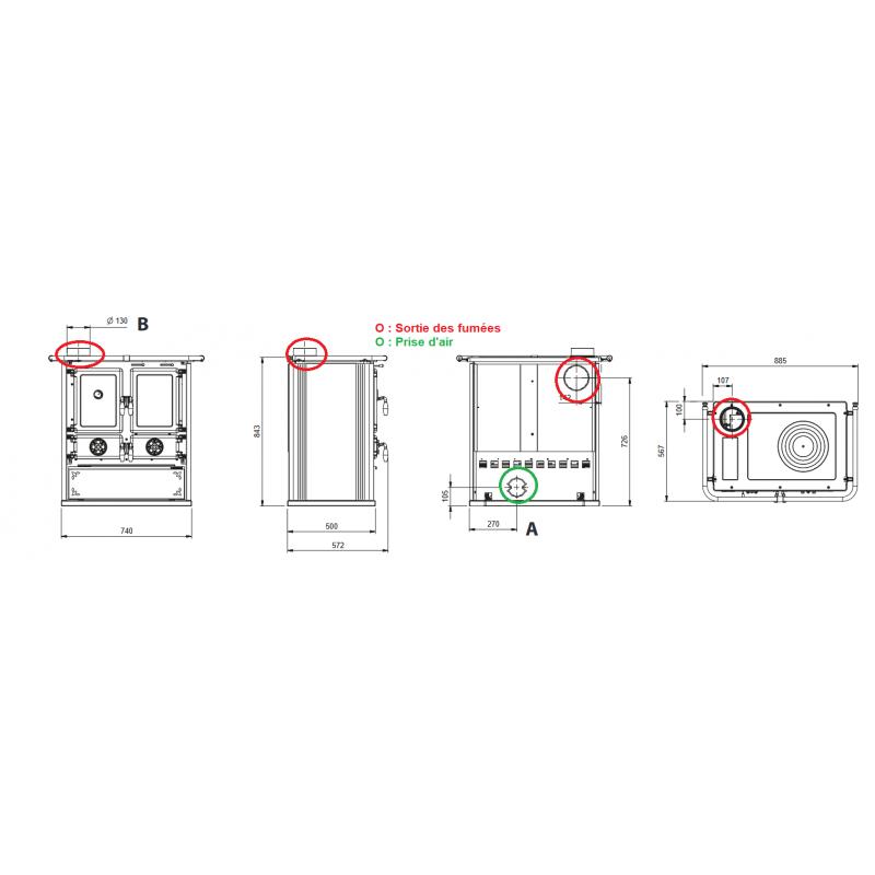 Schéma explicatif de la Cuisinière à bois – LA NORDICA Rosetta Sinistra 5.0 Steel 7.9 kW
