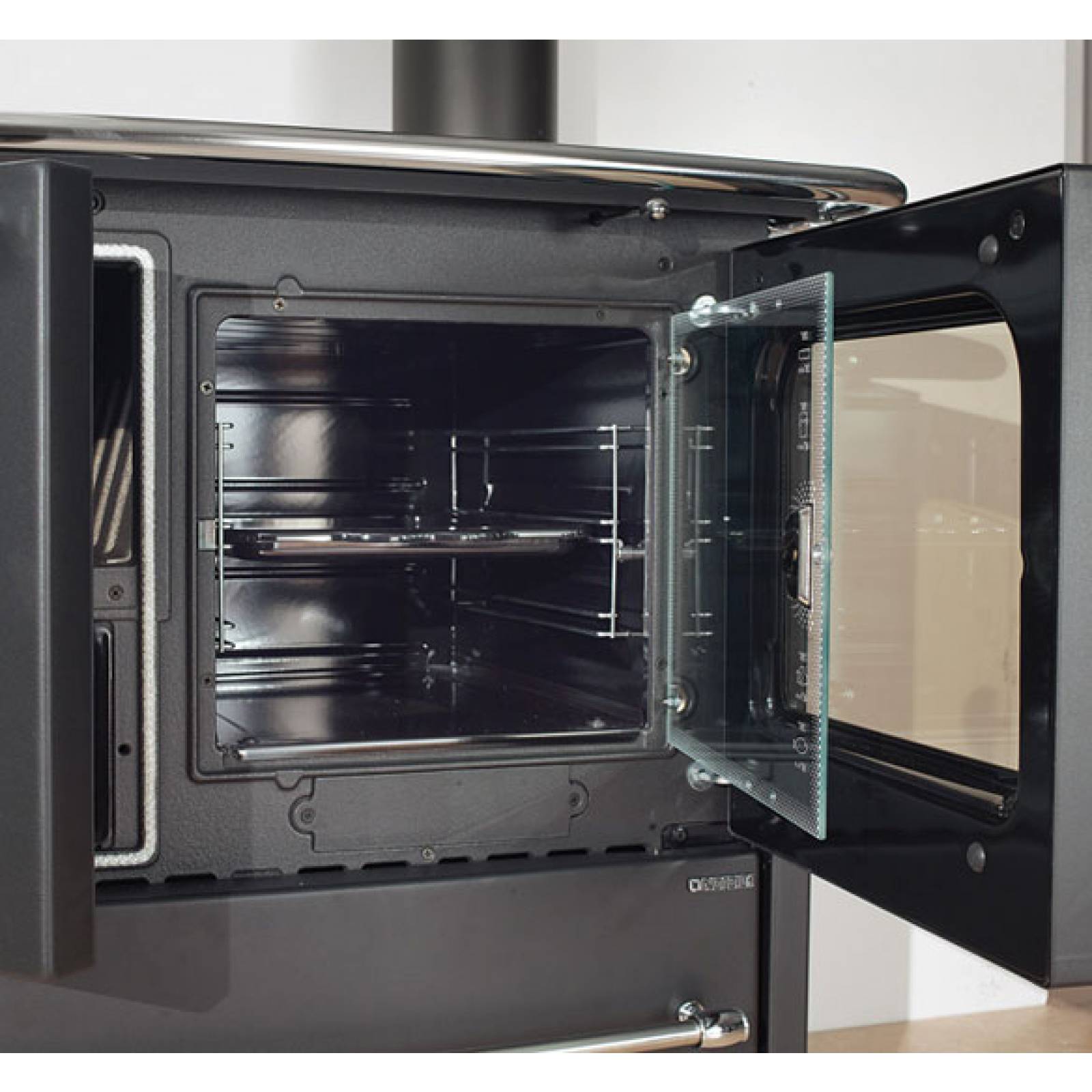 Double combustion avec le système PCS – Économisez du combustibleCe modèle possède le système PCS (Post Combustion System). Pour que l’appareil fonctionne correctement, le feu a besoin d’air comburant, permettant la combustion de la bûche. Les gaz issus de la première combustion sont brûlés et permettent une combustion plus complète de la bouche grâce à une seconde arrivée d’air. La double combustion permet de réduire l’encrassement de votre cuisinière mais aussi de consommer moins de bois, donc de faire plus d’économies.