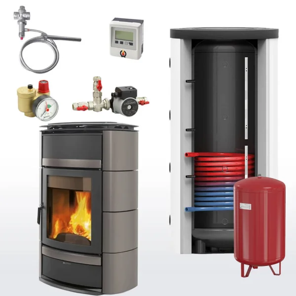 Ensemble complet poêle à eau conduisant La Nordica Norma S Idro DSA Agata Grey 800 réservoir de stockage avec un échangeur de chaleur