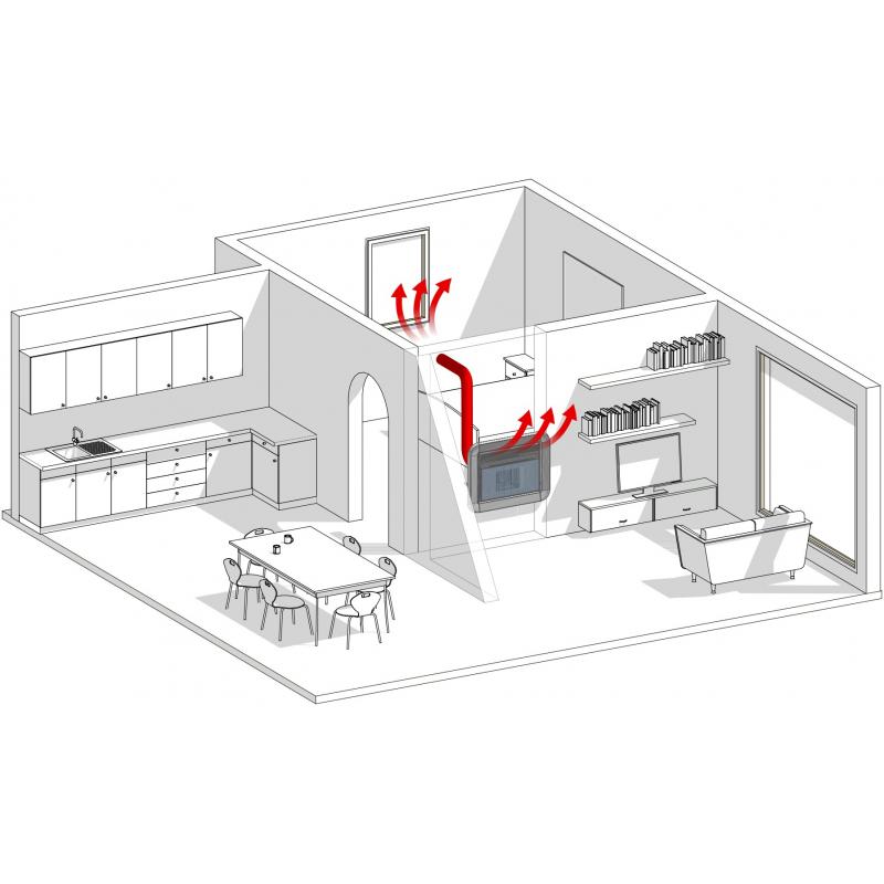 Pour réchauffer un pièce unique adjacente au poêle: Schéma de la canalisation - ANDREA