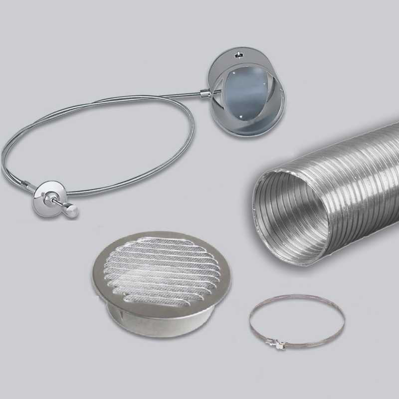 – 1 conduit flexible en aluminium, longueur 3 mètres, permettant de raccorder le clapet papillon à la grille d’air.