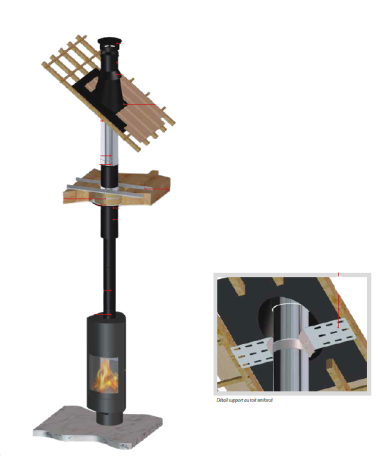 - Facilité et rapidité de montage et de connexion du poêle à bois jusqu’au plafond