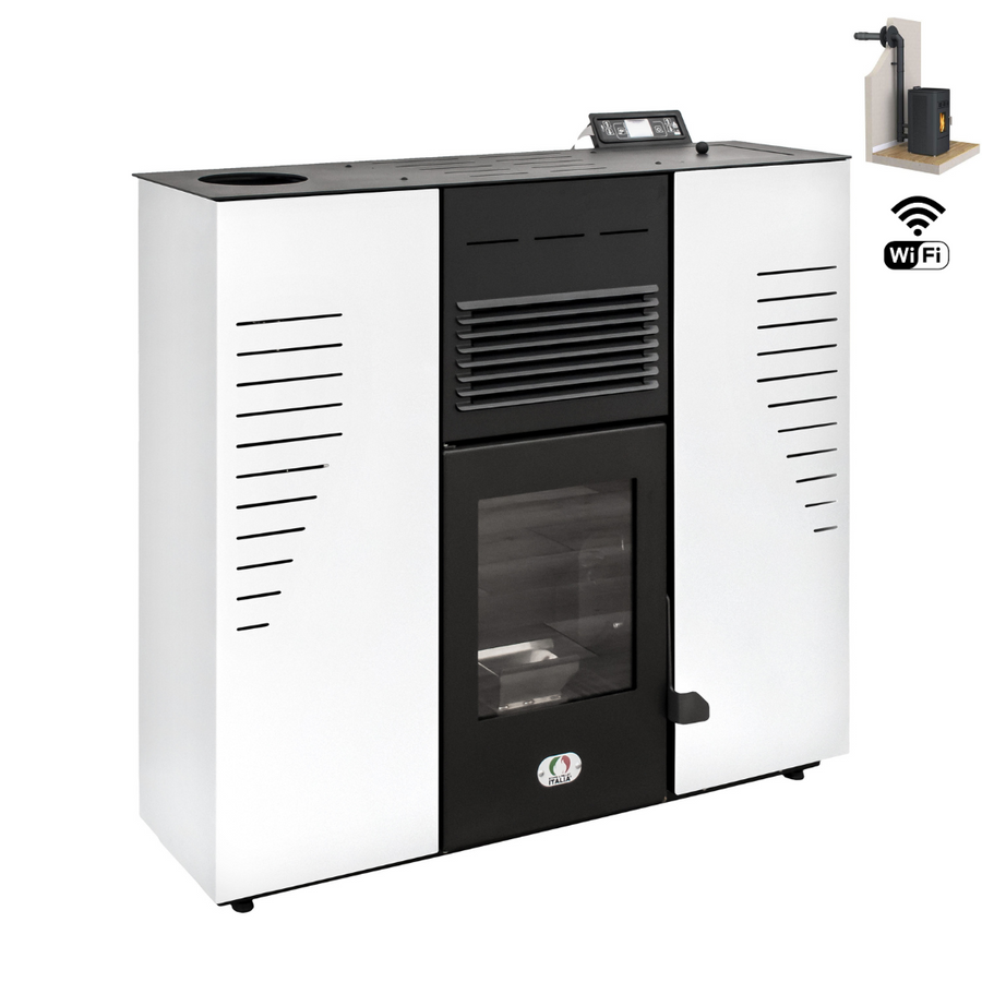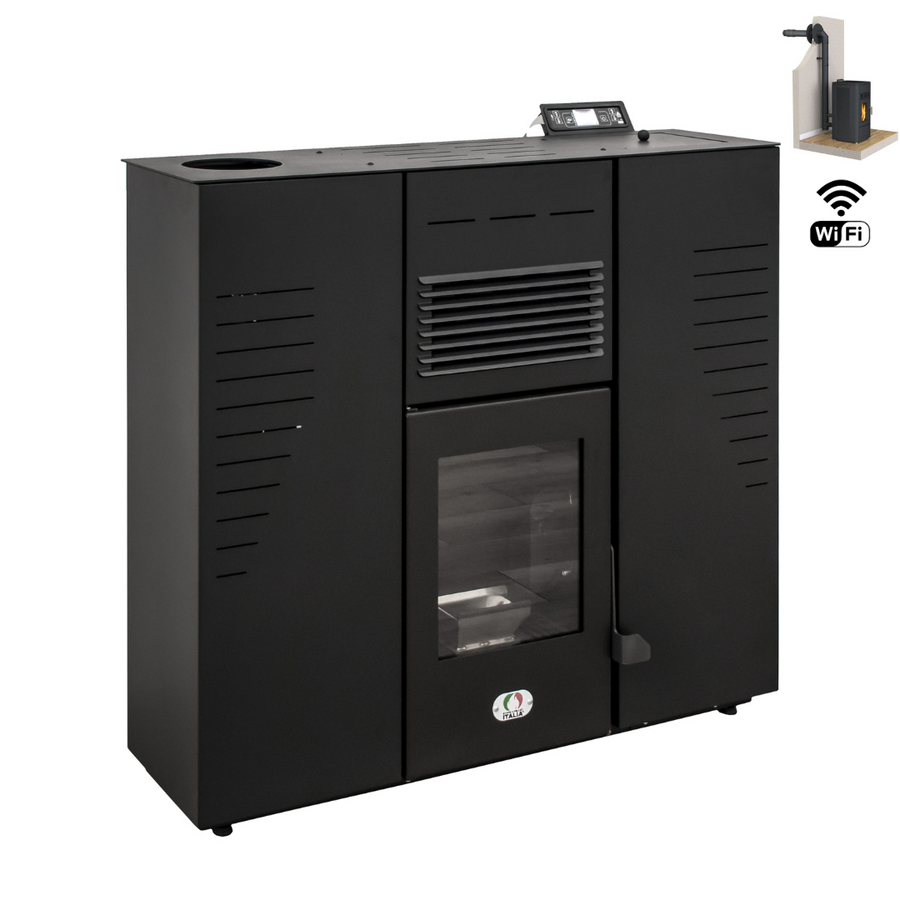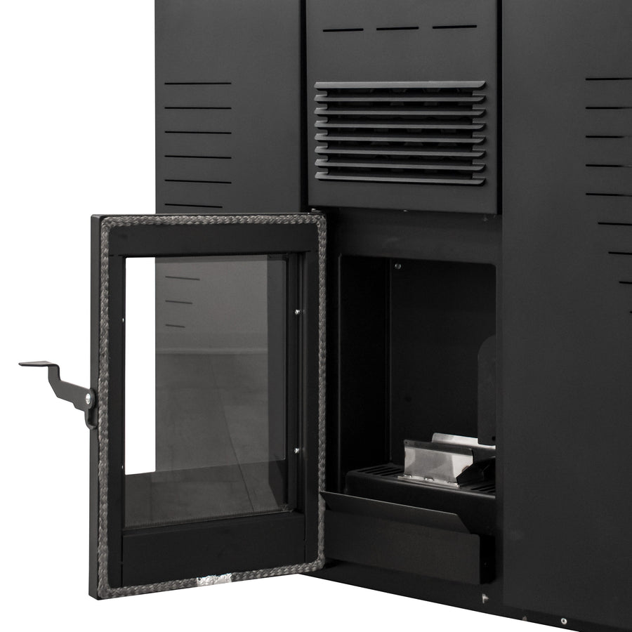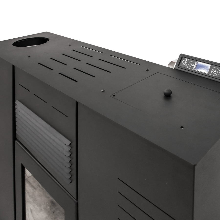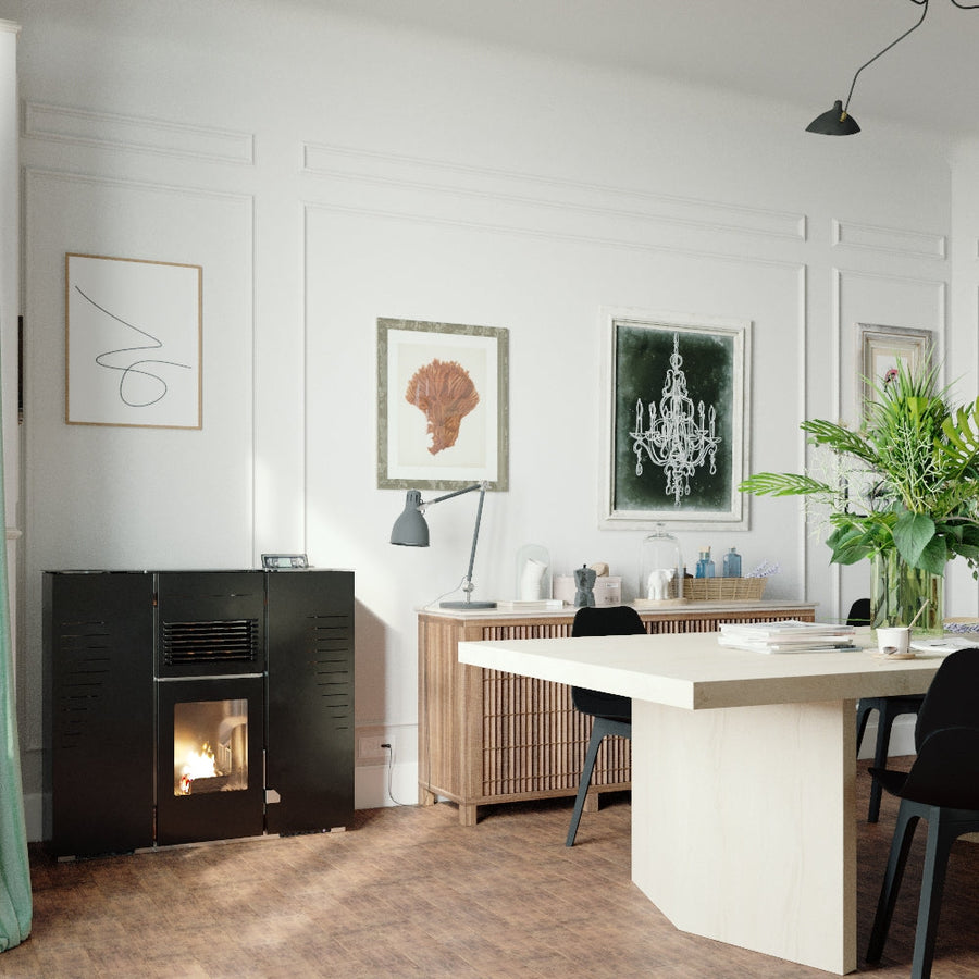 Grâce à son design extra plat, ce poêle à granulés ventilé étanche ,unique en son genre, est équipé intérieurement d’un tube coaxial pour occuper très peu de place (seulement 33 cm de profondeur). Il offre la possibilité d’avoir la sortie de fumées en haut ou à l’arrière, ce qui lui permet d’être installé dans des lieux étroits tels que des couloirs ou des entrées de maisons. Ce modèle dispose d’une gestion de puissance permettant de chauffer des surfaces moyennes et grandes de manière efficace avec ,en modulation à puissance minimale, un fonctionnement économique et silencieux.. Il est en conformité avec les normes françaises, bénéficiant de l’inscription dans le registre de l’Ademe en tant qu’« équivalence Flamme Verte ». Pour un achat en vue de son éligibilité & une installation optimale, les utilisateurs peuvent aussi faire appel, de leur propre initiative, à un installateur agréé RGE bois conformément à la liste des techniciens Ademe disponibles sur leur plateforme en ligne. En outre, son étanchéité certifiée à 50 Pa procure une sécurité de fonctionnement accrue. Son installation de conduit de fumées concentrique (kit ventouse fumées selon réglementation en option en zone 2 -kit vertical concentrique- ou zone 3 -kit horizontal concentrique/ventouse) est également avantageuse pour une utilisation optimale.