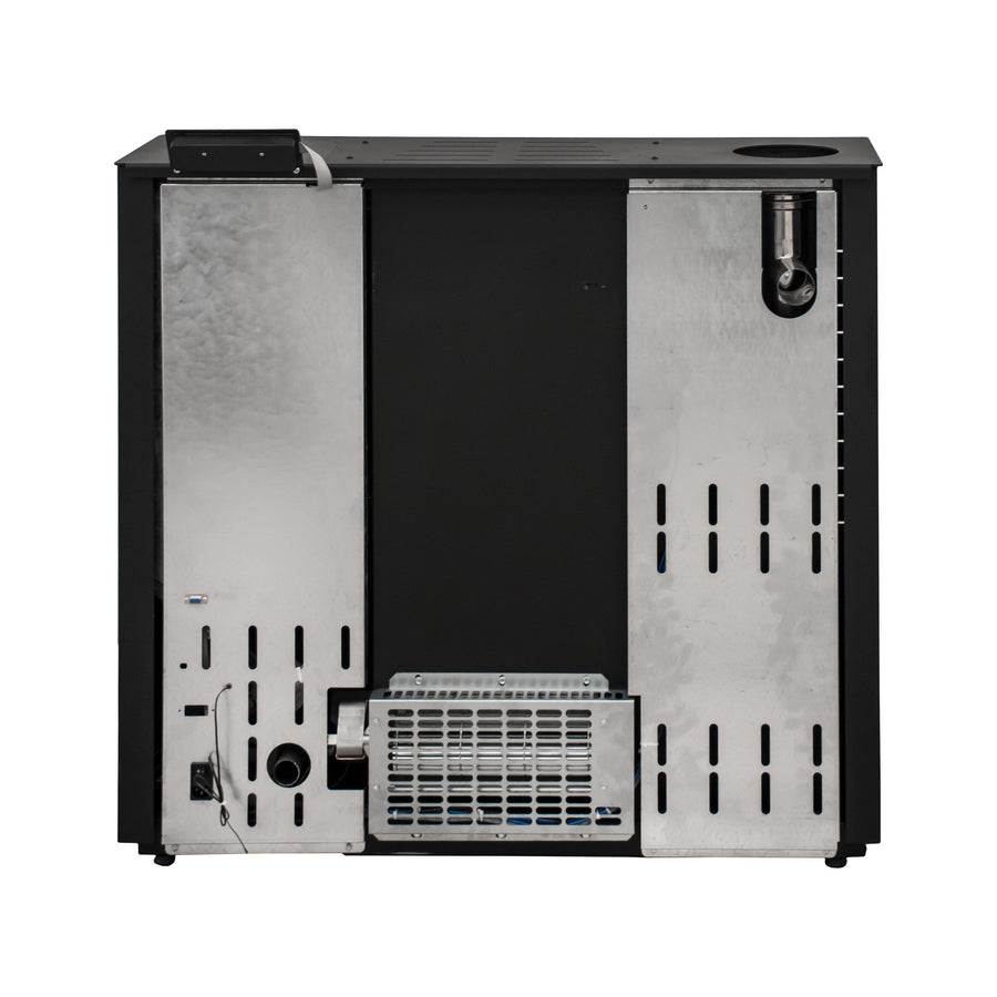 P) Chambre de combustion: En acier 310s, un acier réfractaire spécial qui a de meilleures performances thermiques que la vermiculite (utilisée par d’autres marques) ou la fonte (qui est thermiquement efficace mais plus poreuse et donc moins facile à nettoyer)