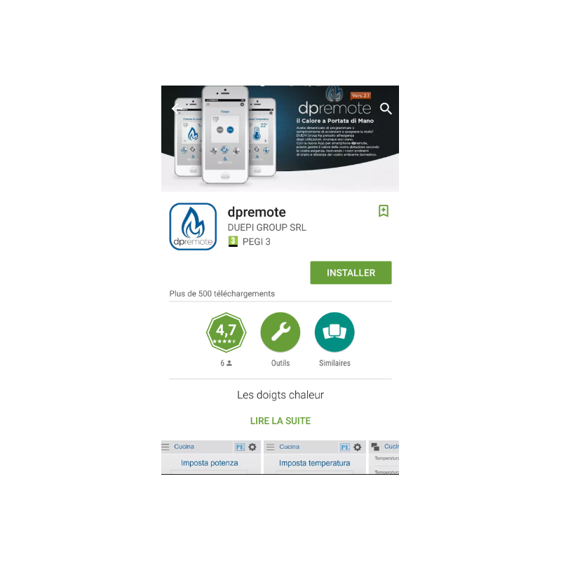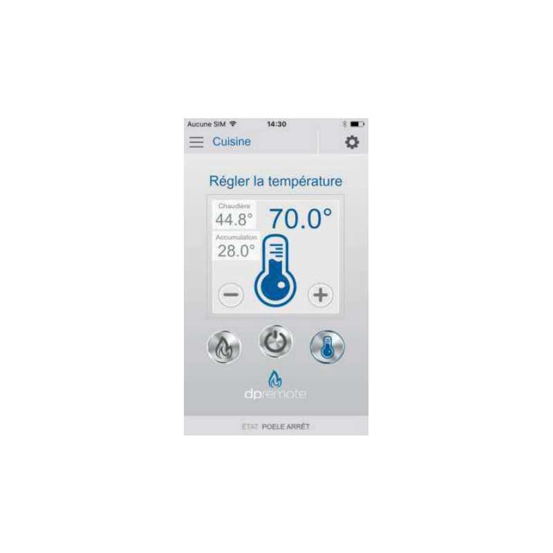 Cette application permet de mettre en marche votre poêle, de réguler la température très rapidement ou encore de régler la puissance délivrée par le poêle.