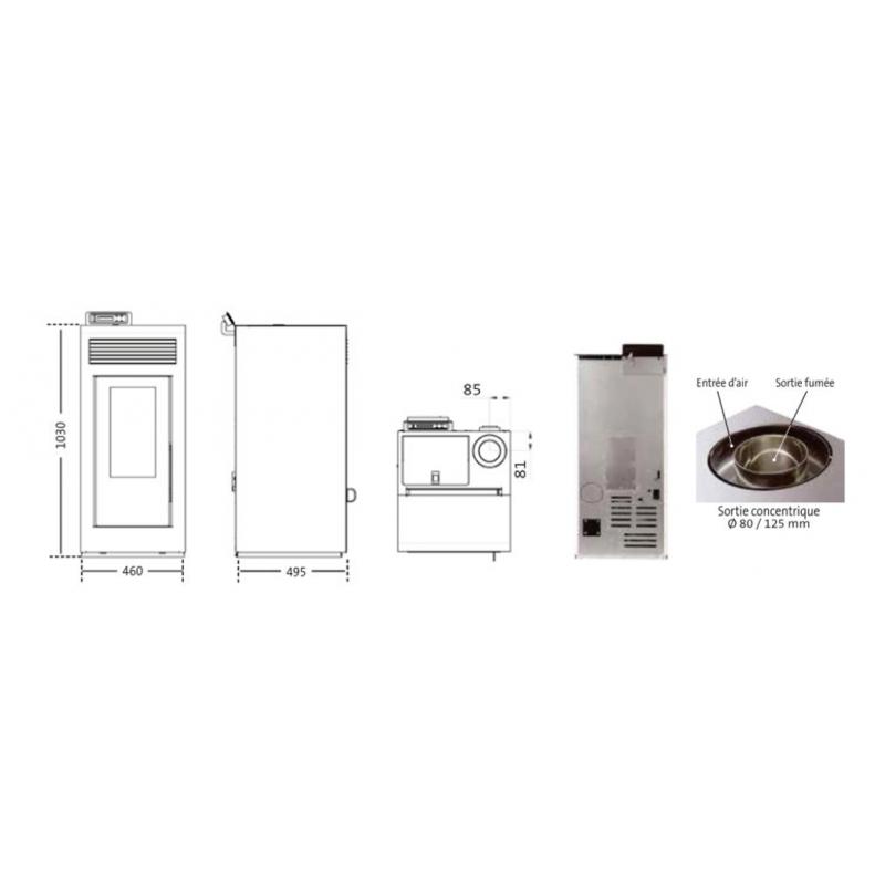 - Sortie des fumées : Supérieur concentrique 80/125 mm