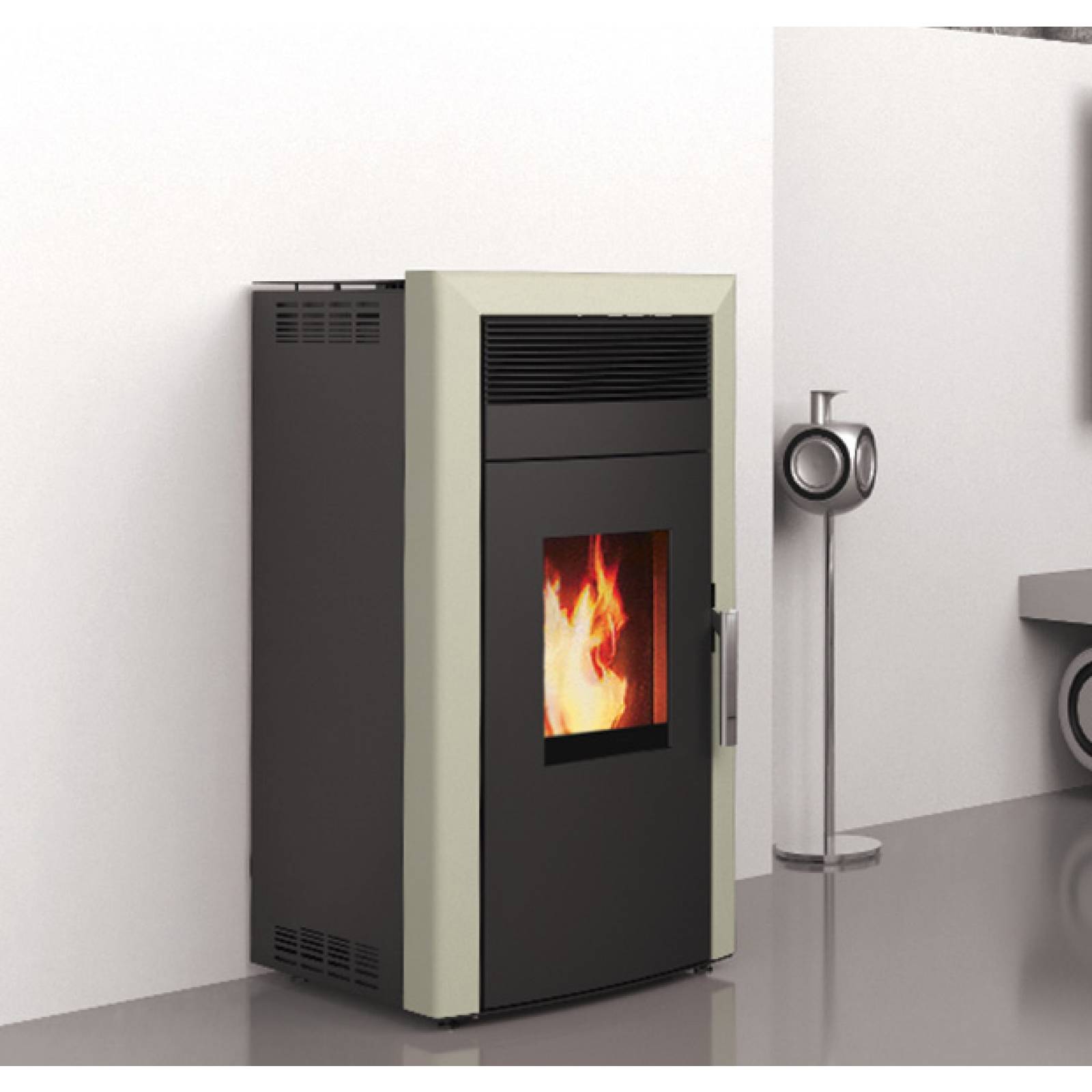 Côté esthétique : le modèle est bien ajusté. Son design moderne facilite une intégration harmonieuse dans tous les intérieurs. Son gabarit compact assure un gain de place, tout en disposant d’un réservoir à granulés de forte capacité (45 kg) pour plus d’autonomie (jusqu’à 30h).