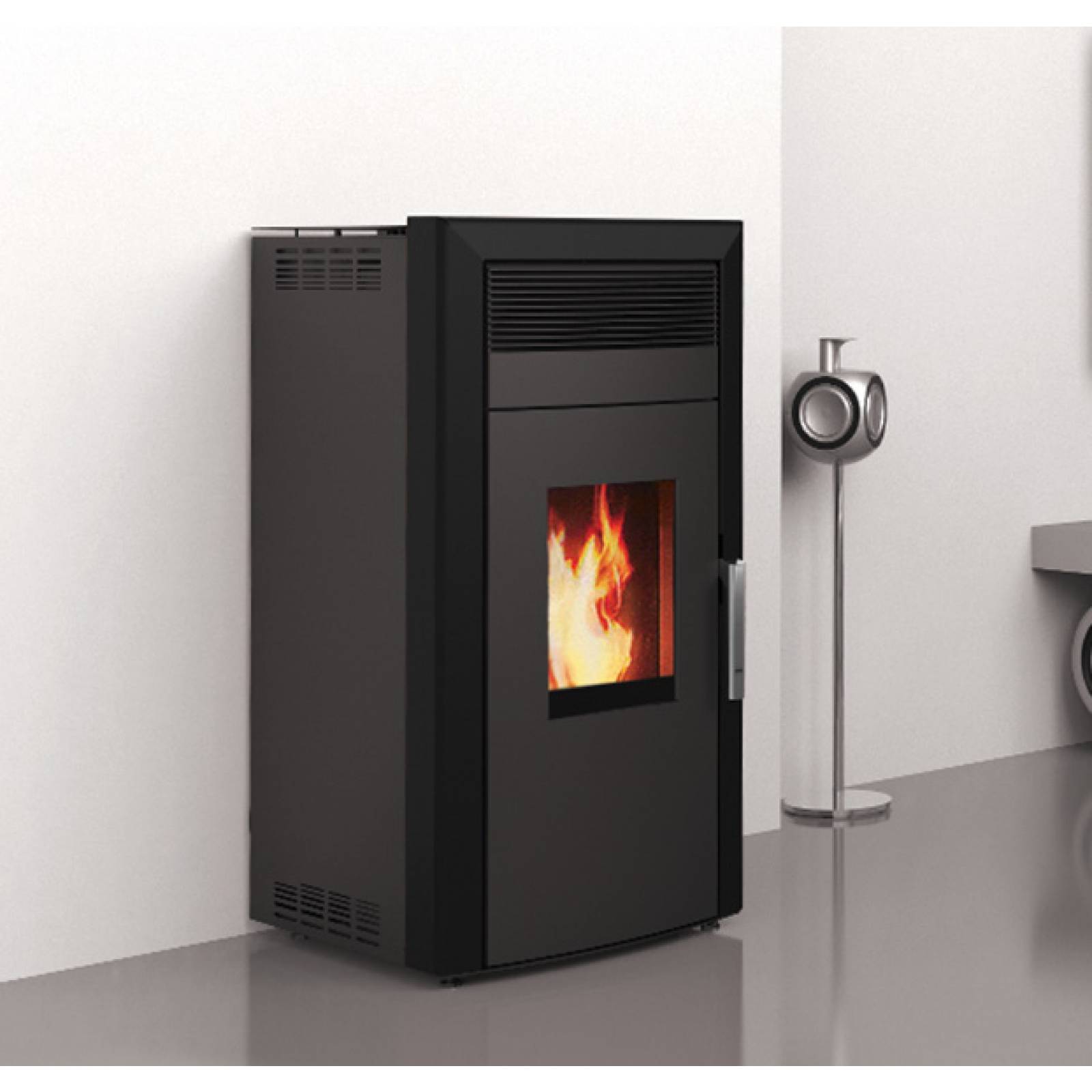 Ce poêle est équipé d’une sonde ambiante, vous pouvez choisir entre deux fonctions : stand-by ou modulation. Le mode stand-by permet au poêle de s’arrêter une fois la température demandée atteinte et de redémarrer automatiquement dès que celle-ci redescend. En mode modulation, il se régule automatiquement, mais sans jamais s’arrêter. Le choix entre ces deux modes se fait en fonction de vos besoins de chauffage et vous garantit un contrôle plus précis de votre consommation.