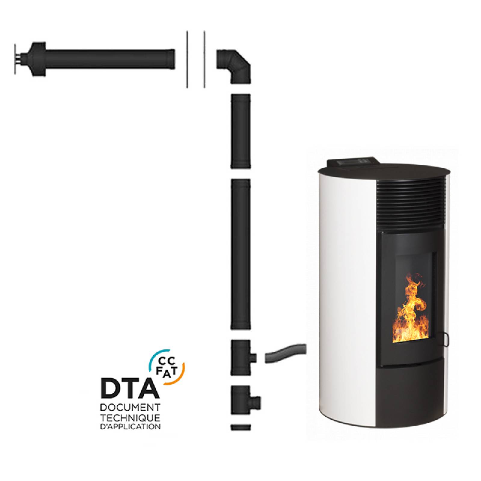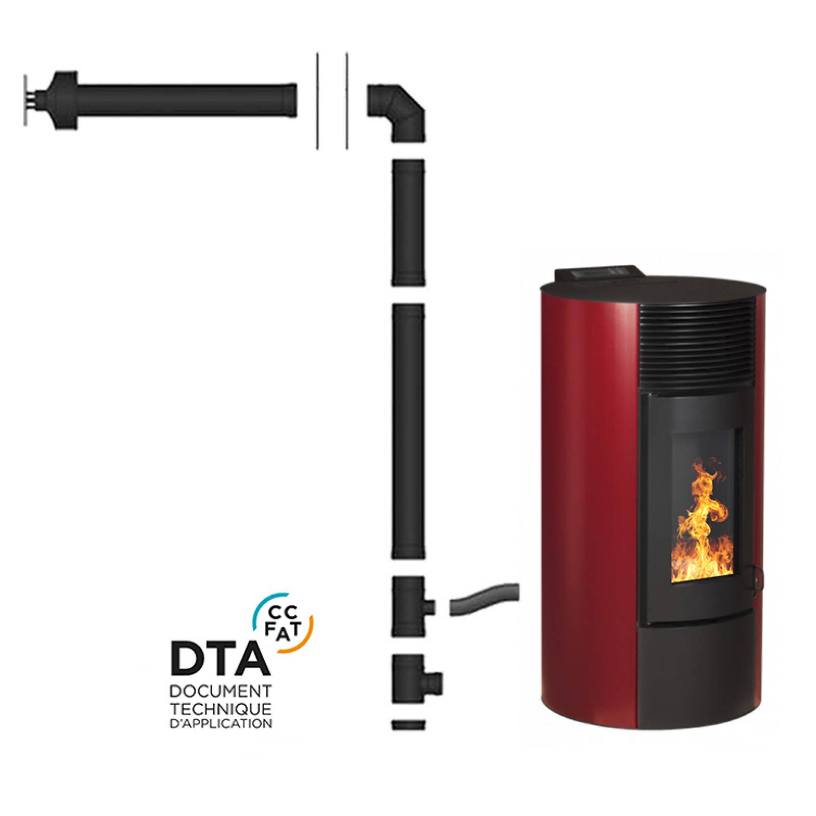 Grâce à l’évacuation en ventouse, vous avez la possibilité d’installer votre poêle à différents endroits. En effet, il n’est pas nécessaire de sortir par un conduit de cheminée 40 cm au-dessus du faitage. Il suffit que la sortie horizontale soit au moins à 2 mètres du sol et à 2m de toute ouverture (fenêtre, porte…).