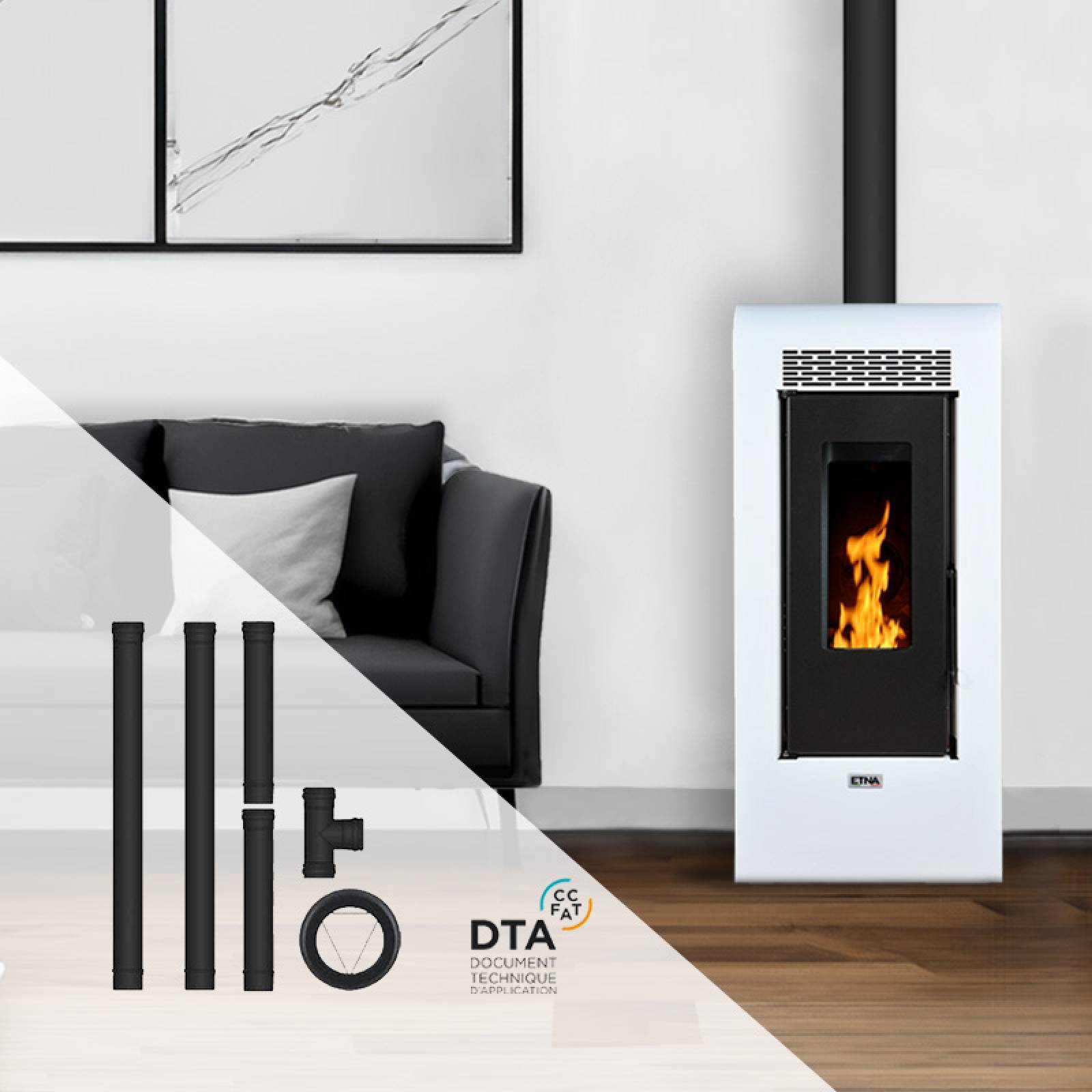 Une installation sûre et simplifiéeCe pack, adapté pour un poêle installé en sortie arrière, est composé des éléments suivants :