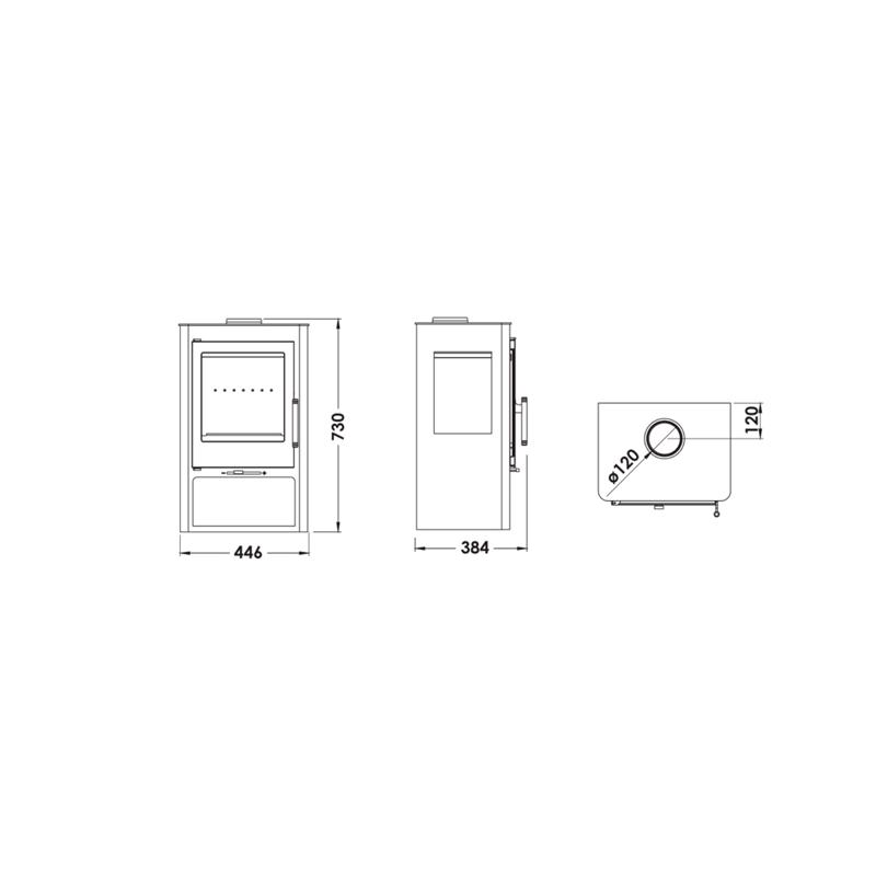 Schéma technique du Poêle à bois – PANADERO Coral 3V 5.4 kW
