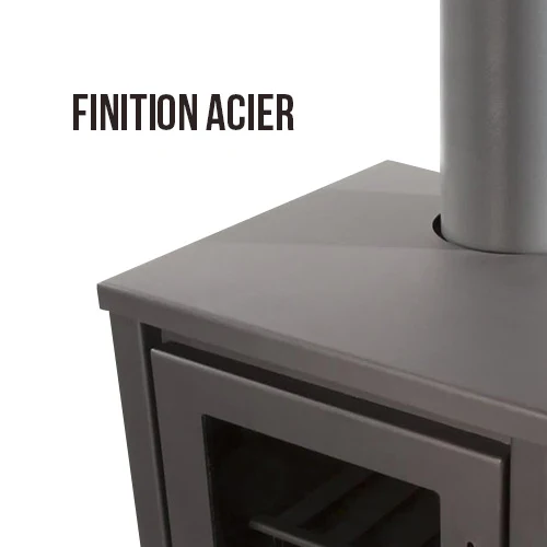 Vitre en verre céramique : résiste jusqu’à 850°C, pas de risque d’endommagement par la température.