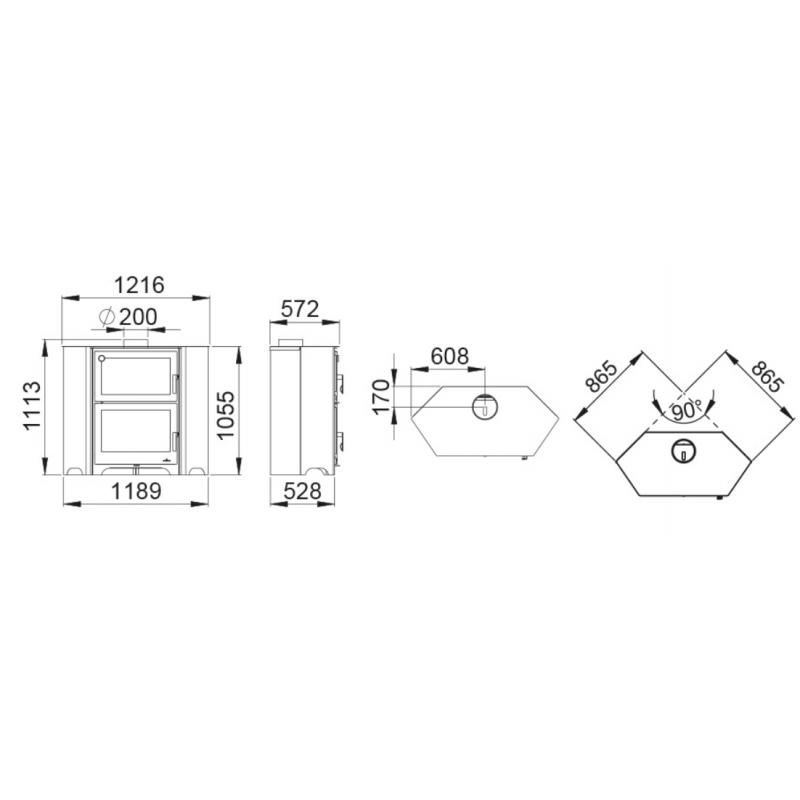 Schéma technique du Poêle à bois avec four – BRONPI Murano – R 14 kW
