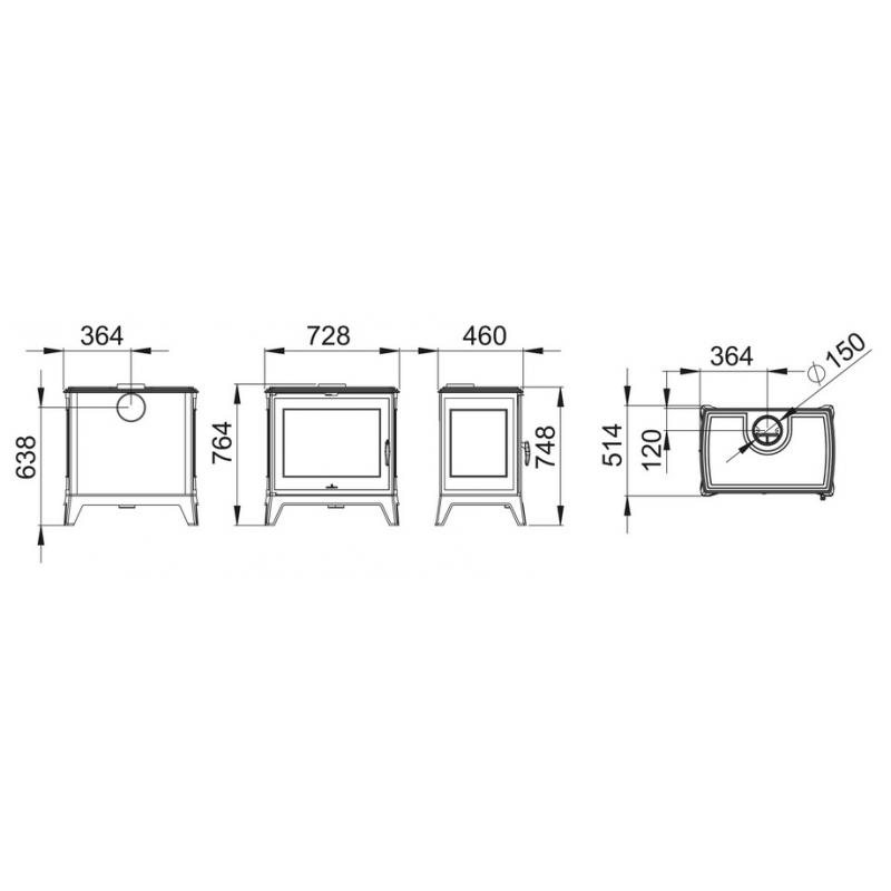 Schéma technique du Poêle à bois en fonte – BRONPI Derby 14.3 kW