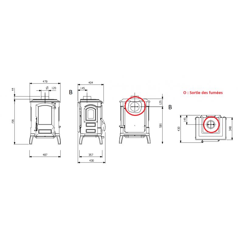 Schéma explicatif du Poêle à bois en fonte – LA NORDICA Giulietta X 4.0 6.5 kW