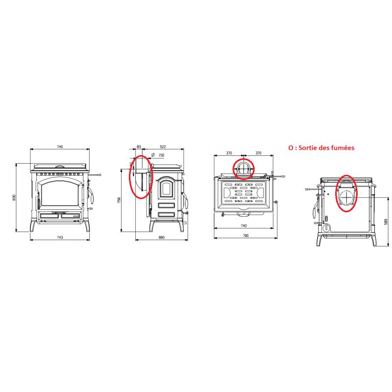 Schéma technique du Poêle à bois – LA NORDICA Isotta con cerchi Evo 11.9 kW