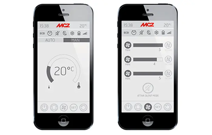 Le contrôle du poêle s’effectue grâce à une application, plus intuitive et plus simple à utiliser qu’une télécommande classique et facile à installer sur son téléphone portable ou sa tablette pour l’utiliser à la maison comme hors de chez soi.