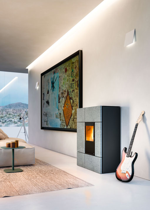 Au moyen d’une application (App) dédiée, il est possible de gérer et de programmer le poêle également à partir d’un smartphone ou d’une tablette : pour un confort maximal à la maison ou à l’extérieur. L’application nécessite un kit accessoire et peut fonctionner au moyen d’un SMS (système GPRS) ou avec wifi.