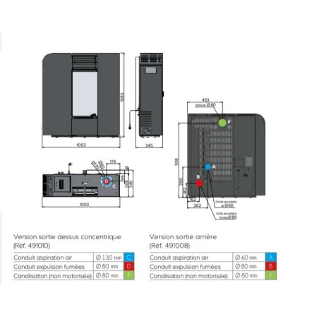 La sortie de fumée se fait par le dessus, avec un diamètre d’évacuation des fumées de 80 mm.