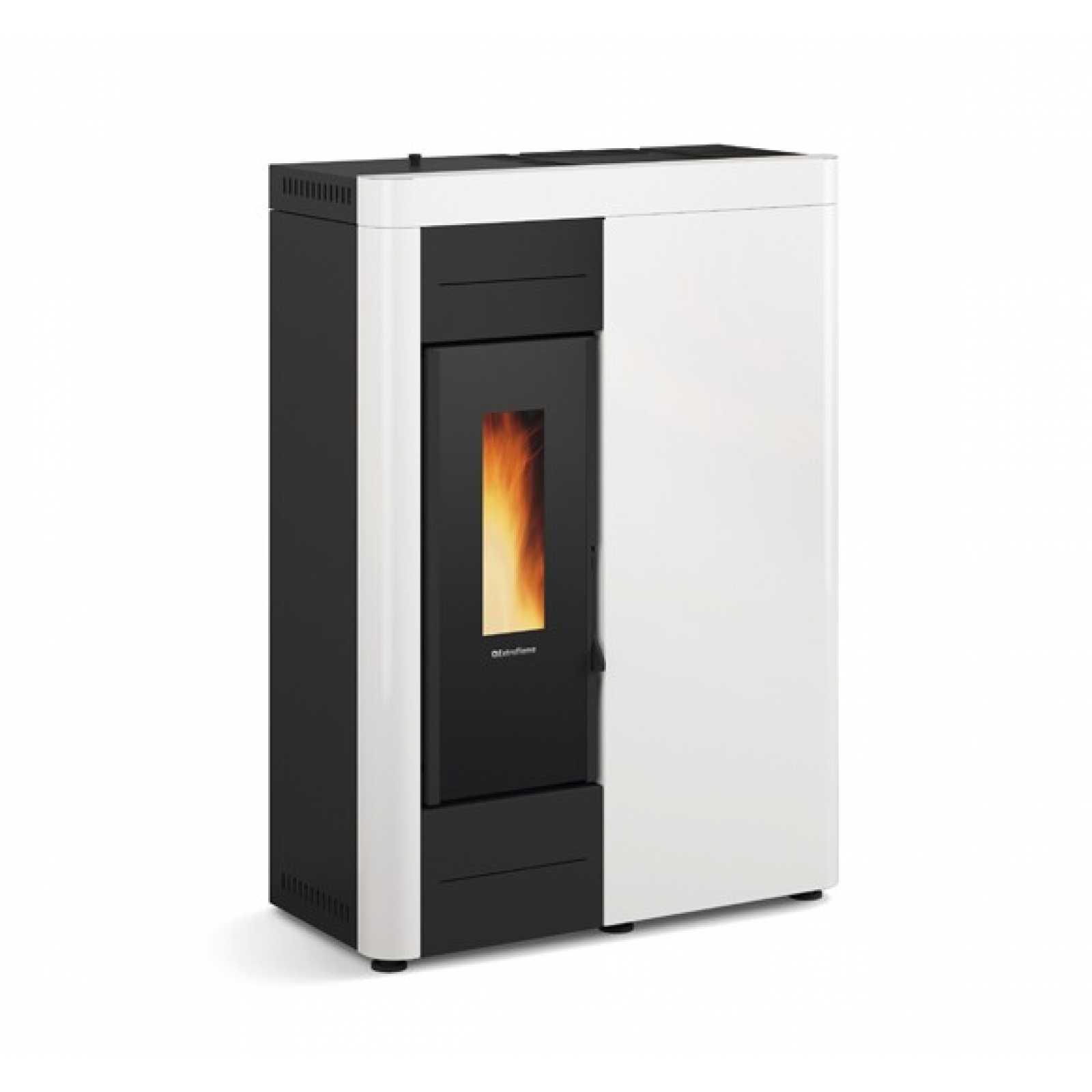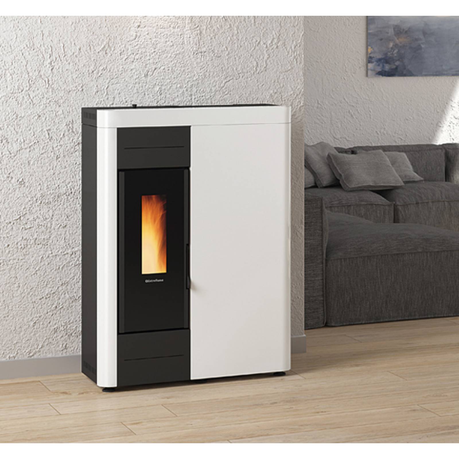 Le poêle à granulés extra plat hydro Raffaella Idro est un concentré de performances. Du haut de ses 110cm, il représente l’équilibre parfait entre économies et puissance. Faible consommateur en granulés, ce poêle économe à un excellent rendement de 93%. Sa capacité de chauffe de 415m3 et sa puissance de 15kW font de lui une solution de chauffage optimale. Côté design, Extraflame a conçu un modèle aussi esthétique qu’astucieux.Ce poêle rectangulaire est moderne et élégant grâce à son encadrement coloré. Le Virna Idro, a pour avantage d’être moderne et épuré afin de trouver place dans tous les types d’intérieurs.