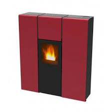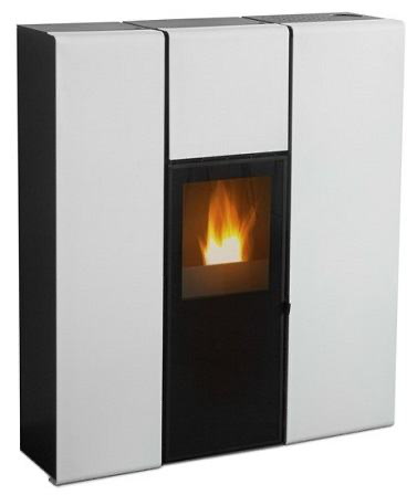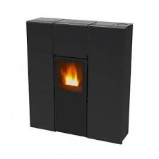Poêle à pellets hydro au design minimaliste idéal pour les espaces réduits; il possède un revêtement en acier de couleur noir, bordeaux ou blanc.