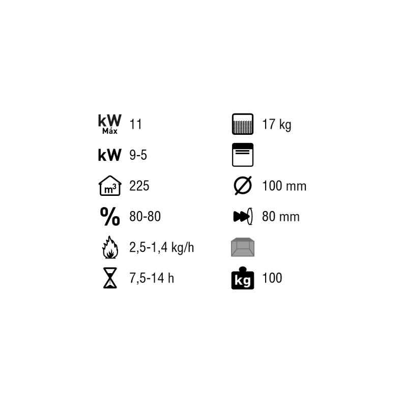 Caractéristiques techniques du Poêle à granulés sans électricité convection naturelle – BRONPI Free 11 kW