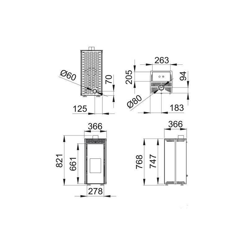 • Diamètre sortie des fumées : 80 mm