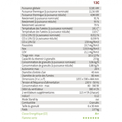 Consommation de granulés (à puissance nominale)3,06 kg/h